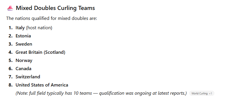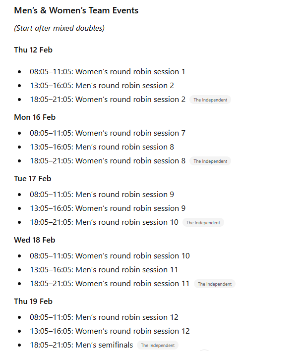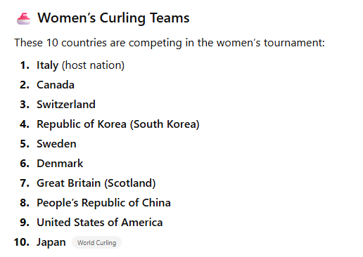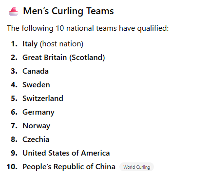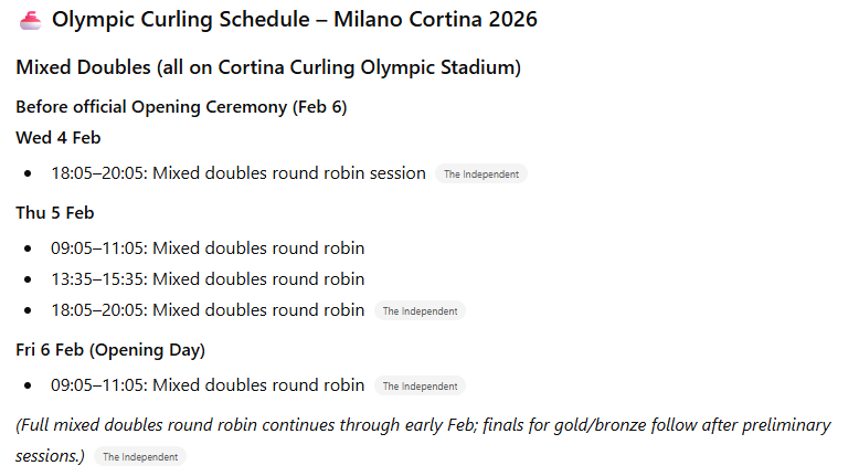 This post sets out the Milano Cortino Curling schedule, results and Teams. In addition which television services you might use to watch the matches.